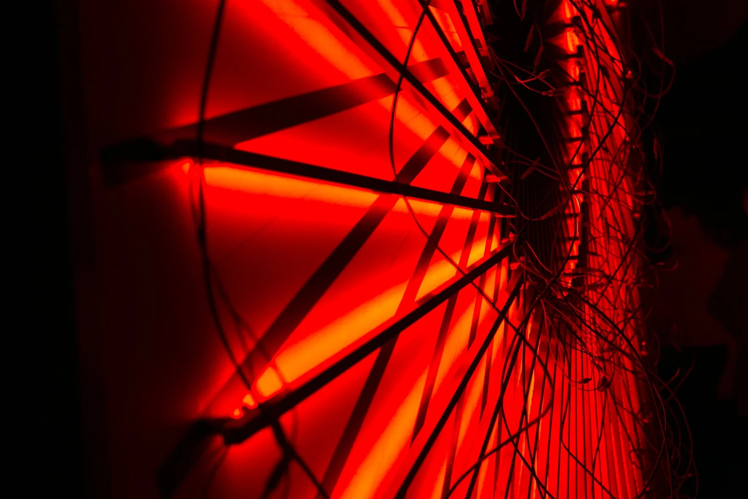 The creative was inspired by design features of Audi cars at the time and their new laser headlights. Hundreds of handmade red LED lasers which crisscrossed the space creating a dynamic environment as guests moved about the space.